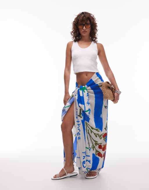 Topshop – Mykonos – Blå och flerfärgad, mönstrad sarong