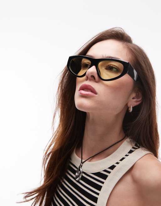 Topshop – Napoli – Gulgröna, vinklade solglasögon