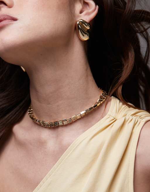 Topshop – Nate – Guldfärgat halsband med trippla blocklänkar