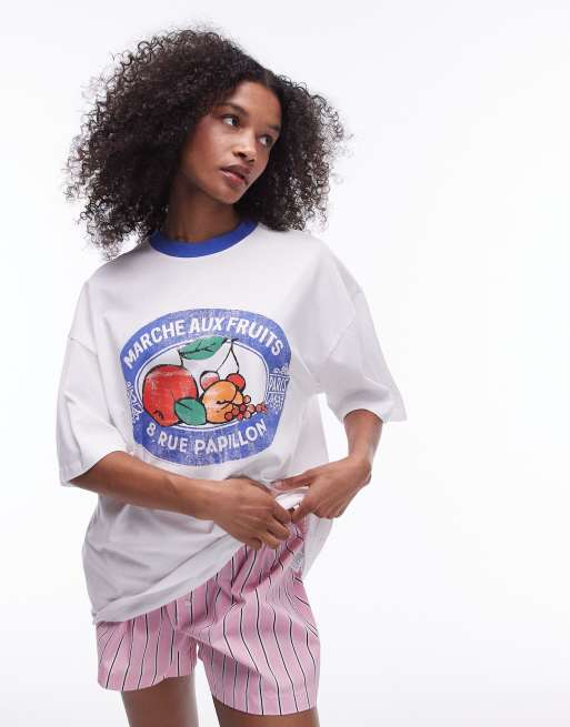 Topshop – Naturvit t-shirt i oversize med Still Life- och frukttryck