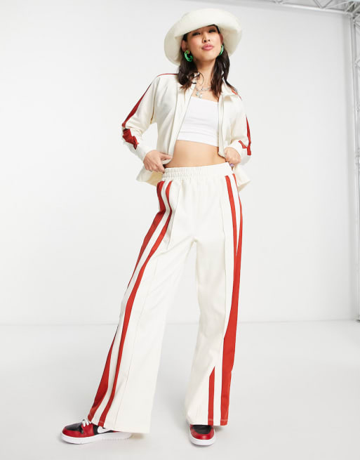 Topshop – Naturvitt, sportigt set med röda ränder av trikå