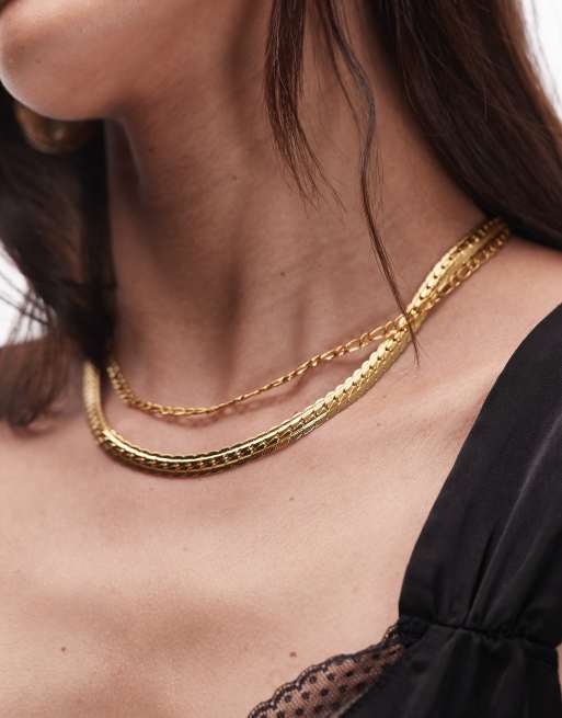 Topshop – Nyla – Guldtonat halsband i vattentåligt, rostfritt stål med orm- och kedjelänkar