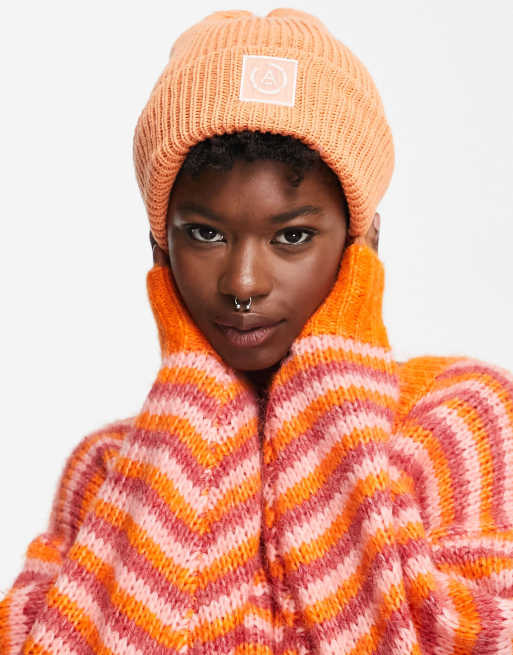 Topshop - Persikofärgad stickad fiskarmössa med logga - PEACH