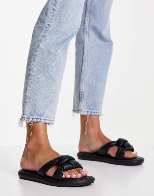Topshop – Pixie – Svarta sandaler med knut och vadderad sula