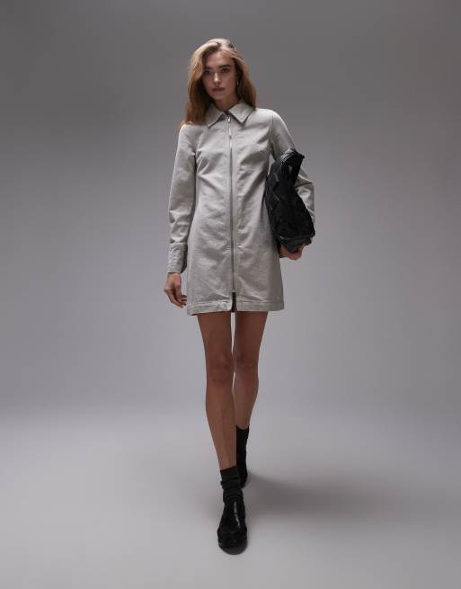 Topshop – Premium – Gräddvit skjortklänning i denim med dragkedja