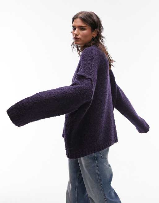 Topshop – Premium – Marinblå stickad tröja i bouclé med alpackaull