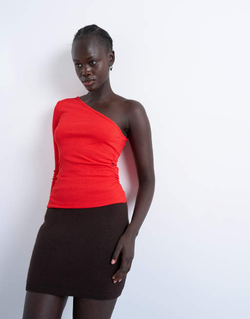 Topshop – Röd, enärmad topp med rynkad sida