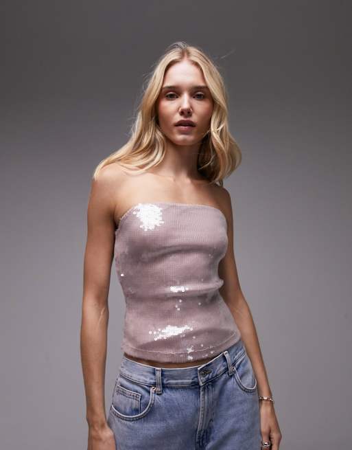Topshop – Rosa bandeau-topp med paljetter