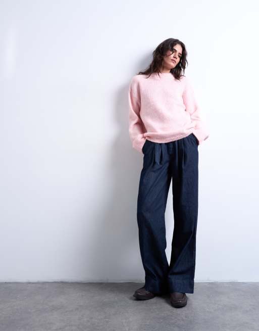 Topshop – Rosa, fluffigt stickad tröja i boxy fit med rund halsringning