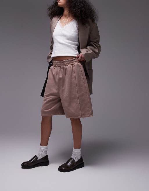 Topshop – Rosa, stentvättade shorts i lång modell