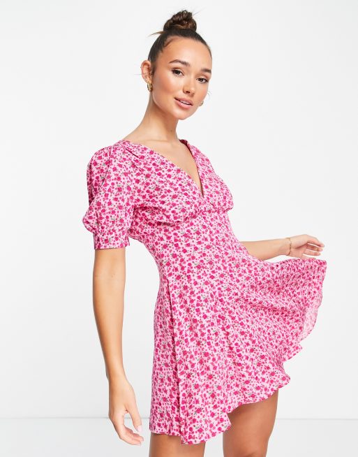 Topshop – Rosa tea-klänning med småblommigt mönster