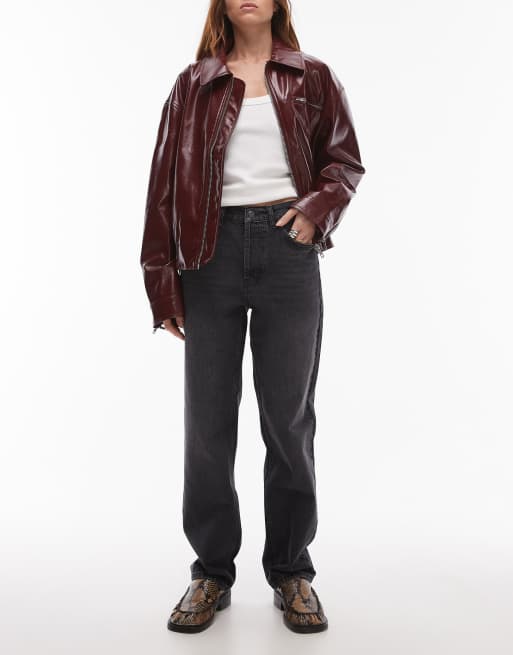 Topshop – Runway – Bleksvarta, raka jeans med medelhög midja