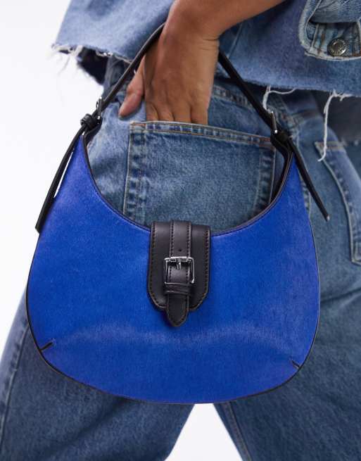 Topshop – Sailor – Blå axelväska av komönstrat läder