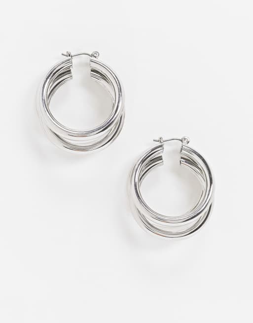 Topshop – Silverfärgade grova creoler med tre band