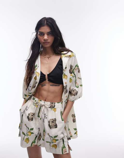 Topshop – Skjorta i linnetyg med stillebentryck, del av set