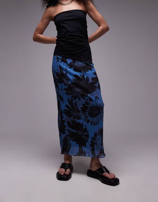 Topshop – Storblommig, krinklad kjol i mesh