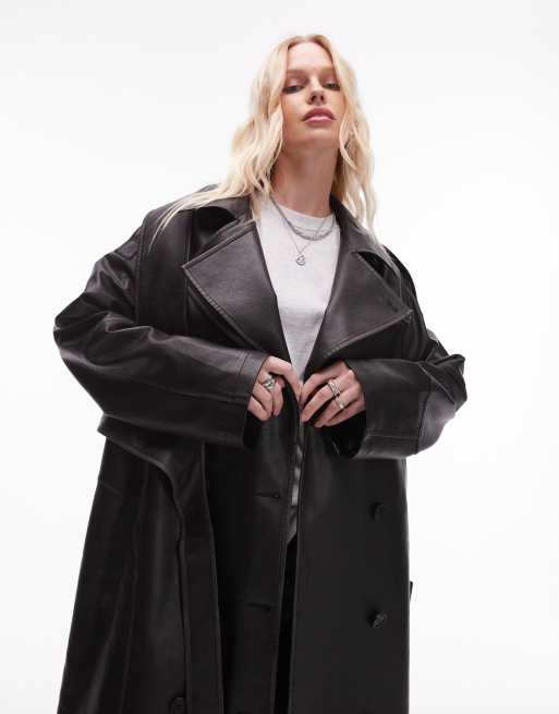 Topshop – Svart, dekonstruerad trenchcoat i läderimitation