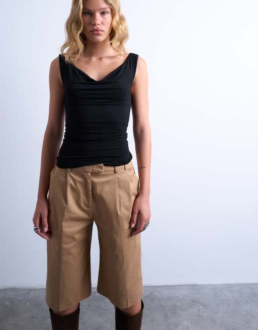 Topshop – Svart linne med draperad ringning
