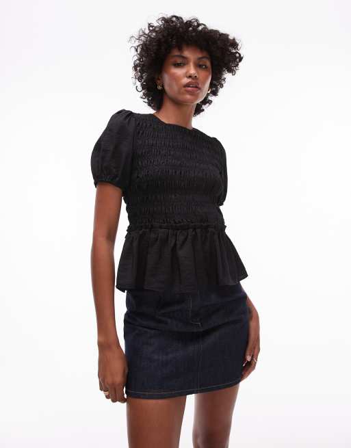 Topshop – Svart, smockad topp
