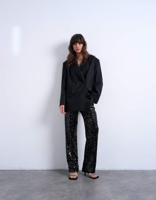Topshop – Svarta, figursydda byxor med paljetter