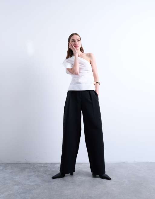 Topshop – Svarta, slouchy, stilrena, figursydda byxor med midjeband