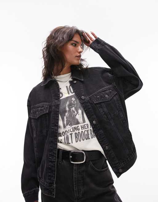 Topshop – Svarttvättad jeansjacka i oversize
