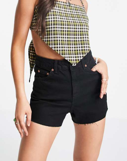 Topshop – Svarttvättade jeansshorts i mom-modell med comfort-stretch