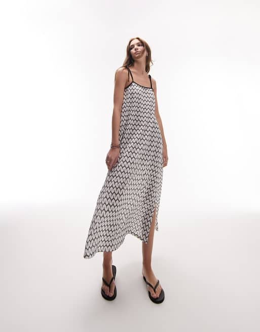 Topshop – Svartvit, stickad strandklänning i maxilängd med knytning på axlarna
