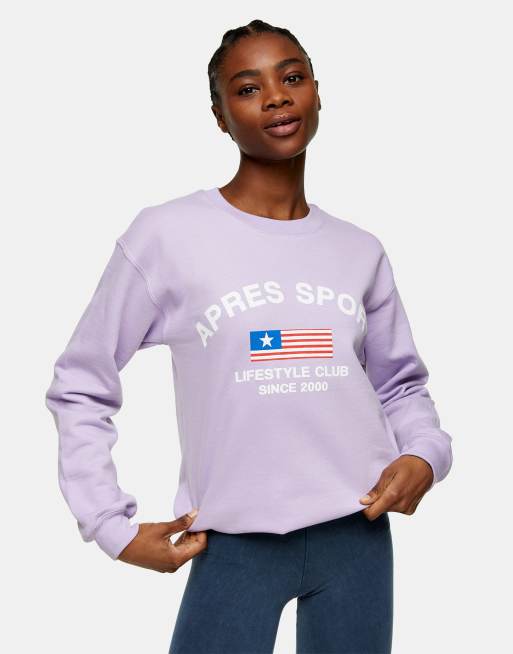 Topshop – Syrénfärgad sweatshirt med 'Apres Sport'-texttryck
