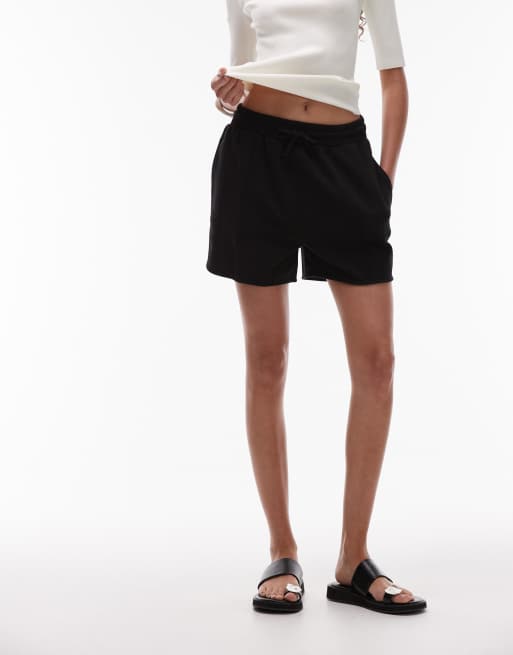 Topshop Tall – Svarta mjukisshorts med stråveck