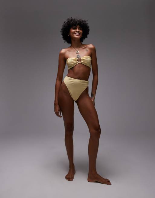 Topshop – Thailand – Ljusgul bikiniöverdel i bandeau-modell med metalldetalj