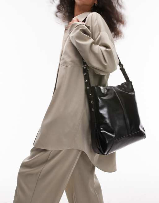 Topshop – Thea – Svart toteväska med oversize spänne och vikt detalj