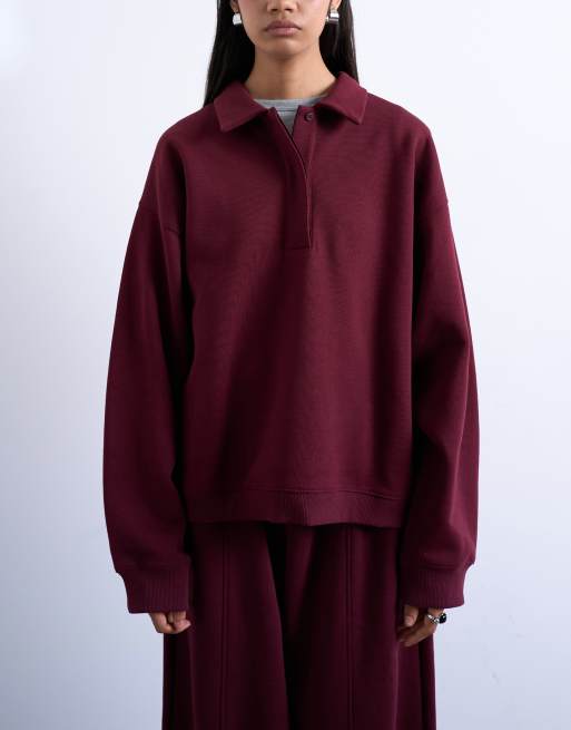 Topshop – Vinröd sweatshirt med pikékrage