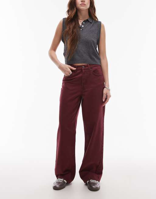 Topshop – Vinröda, raka jeans med medelhög midja och ledig passform