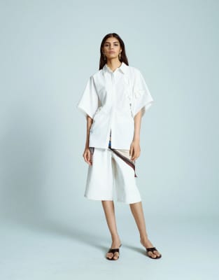 Topshop – Vit semesterskjorta med indragen detalj och 3D-blommor