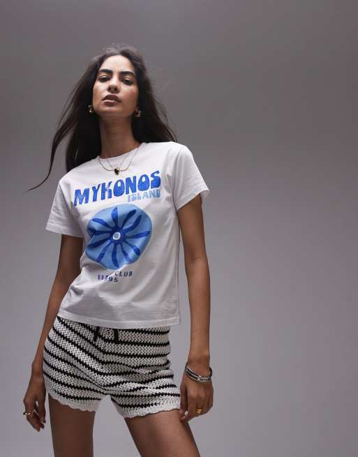 Topshop – Vit T-shirt med Mykonos-tryck