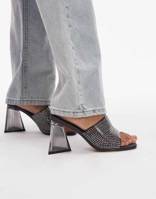 Topshop Wide Fit – Royal – Svarta klackskor med öppen häl och blockklackar