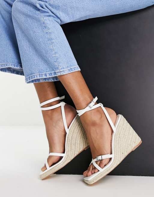 Topshop – Wilma – Vita espadriller med hög kilklack