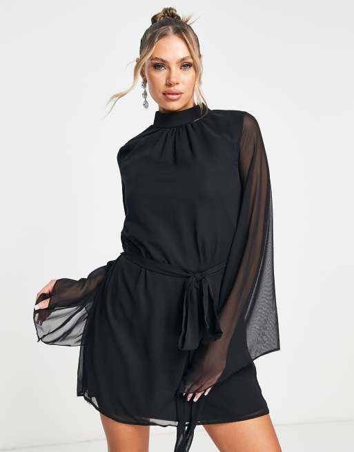 Trendyol – Svart miniklänning med klockärmar och skärp av mesh