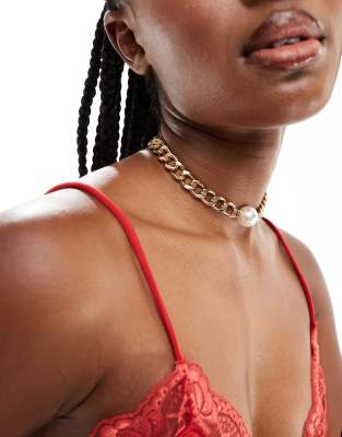 True Decadence – Guldigt chokerhalsband med grov kedja och pärla
