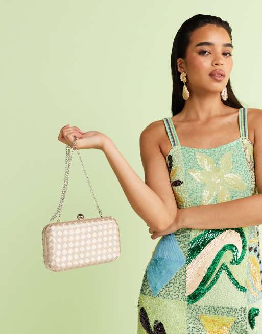True Decadence – Puderrosa, strukturerad, vävd kuvertväska i satin