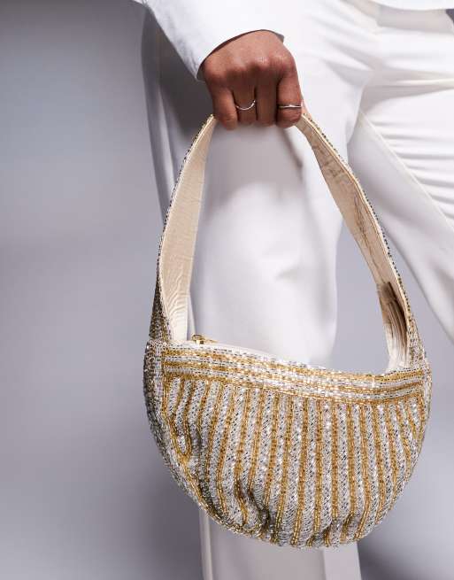 True Decadence – Silver- och guldfärgad axelväska med pärlor