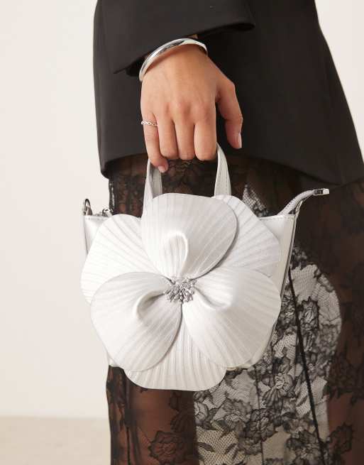 True Decadence – Silverfärgad handväska med blommig design