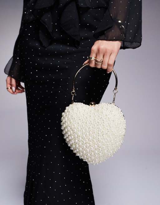 True Decadence – Vit, hjärtformad kuvertväska med pärlor
