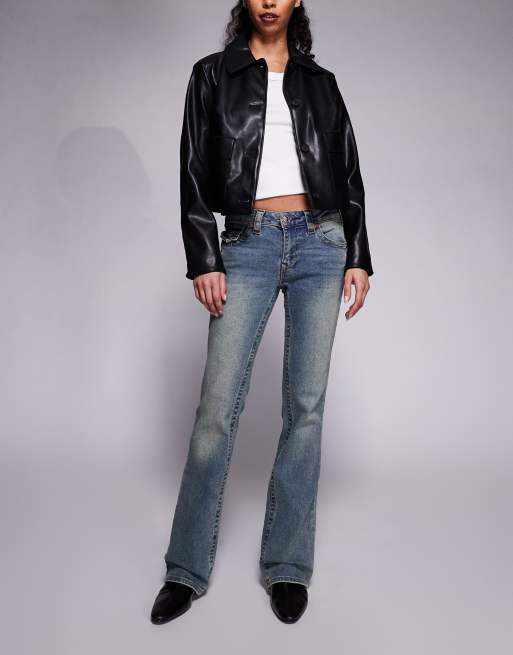 True Religion – Becca – Big T – Mellanblå, tvättade bootcut-jeans med låg midja
