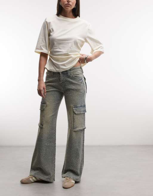 True Religion – Bobbi – Ljustvättade, tonade cargobyxor med strassdetaljer