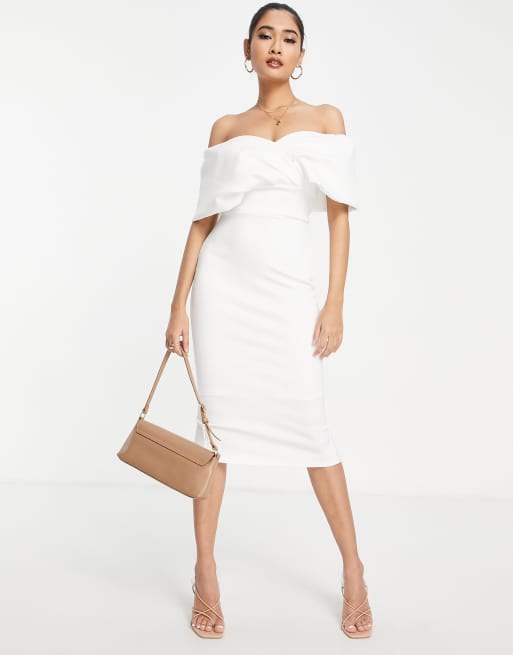 True Violet – Elfenbensvit fodralklänning i midilängd med off shoulder-design