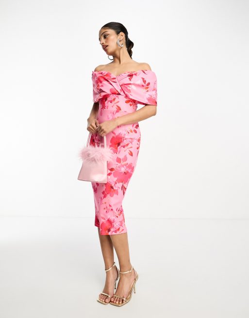 True Violet - Rosablommig midiklänning med nedvikt detalj