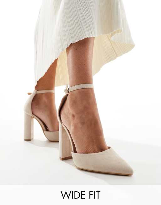Truffle Collection – Bred passform – Beige pumps med blockklack