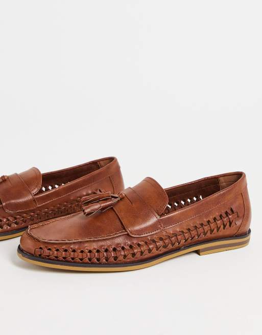 Truffle Collection – Bruna flätade loafers i läderimitation med tofsar